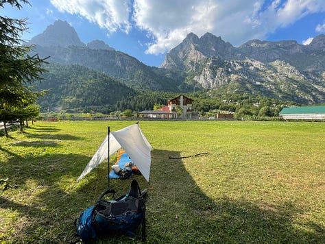 To prepare for Nepal, this summer I spent two weeks in the Balkans, trekking alone and getting comfortable with hitchhiking and traveling without knowing where I would eat or sleep. I brought along a tarp as a backup, which combined with some rope and trekking poles — allowed me to camp anywhere. After a while I began to resent the limitations posed by the few reservations that I did make — enjoying much more the flexibility that comes with uncertainty.