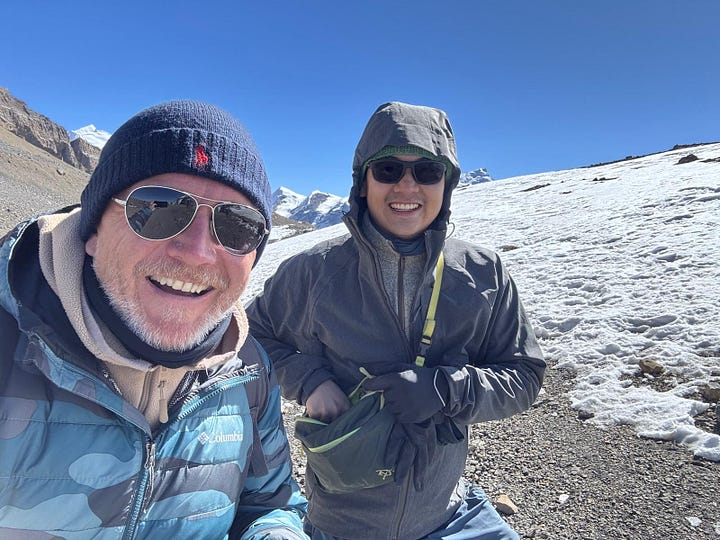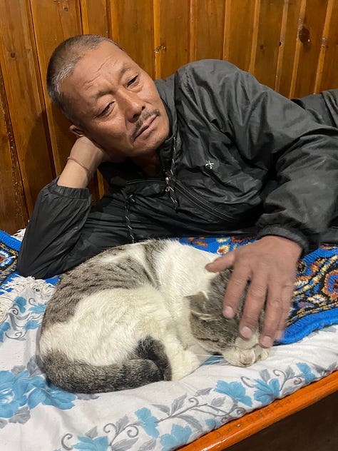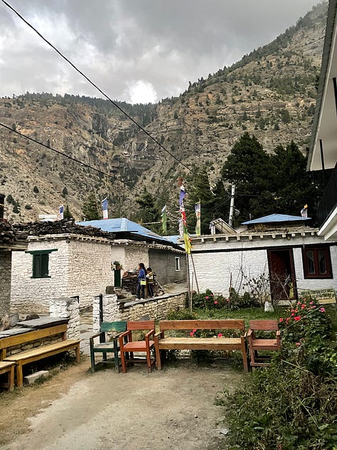 I share a tea with two detectives from Berlin. One had just lugged a giant bag of toys up for a local school. The last time they were here (2014), they had to turn back just before Throng La Pass due to a snowstorm that they later found had claimed dozens of lives. And they lamented a little — they were glad to see someone like me, traveling alone and open to the world. There were more the last time. Later that night, the proprietor tries to teach me some Nepali phrases: