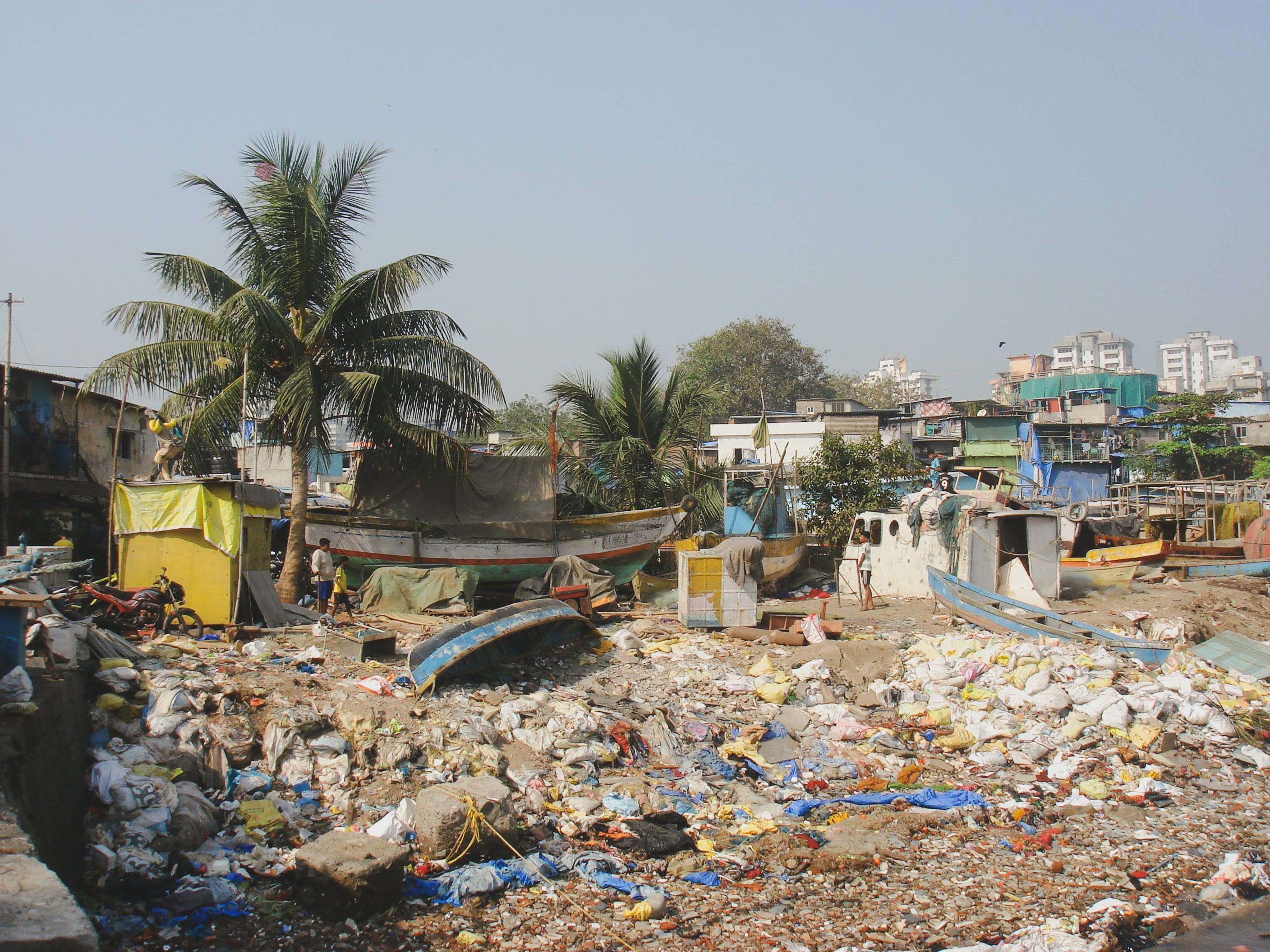 Following the main road brings me to where the slums meet the water. Painted concrete and corrugated metal, less colorful than the clothes suspended from rooftop lines, sit behind blue barrels, boats, and bikes. I pass schoolgirls in uniform and children climbing on beached boats along the causeway. A group of young boys are setting up soccer goals on a small strip of turf, anchoring the metal frames with discarded pieces of debris. They turn and ask “playing?” to me. People greet me with soft smiles and a hand to their chest, and I think that there is more peace to be found here, than in other parts of the city. In a small slit between whitewashed apartment blocks and the slums, the ocean caresses the mouth of an open landfill that is masquerading as a beach. Small wooden boats bob on the tide, joined by styrofoam blocks and plastic pastiche. Looking out over the waters were two kids, standing atop the rusted shell of an old boat, pulling at a string. They had made a kite out of newspaper: a diamond form with two tails fluttering in the ocean breeze.
